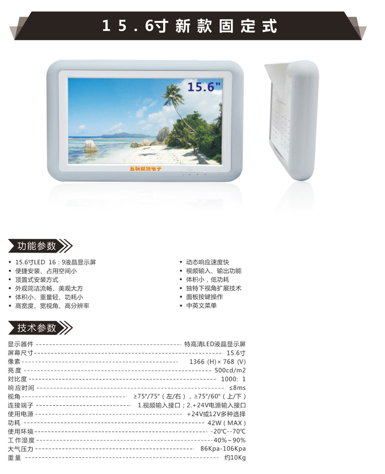 产品展示 您现在的位置:首页 > 产品展示页 > 液晶显示器系列 > 15.6寸新款固定式