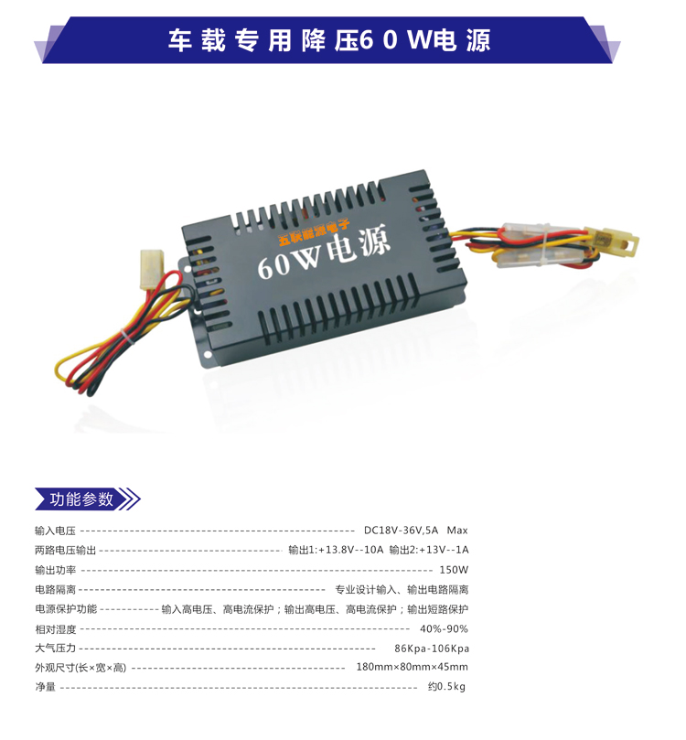 产品名称:车载专用降压60W电源