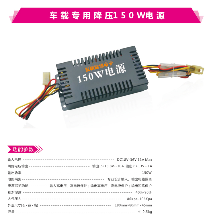 产品名称:车载专用降压150W电源