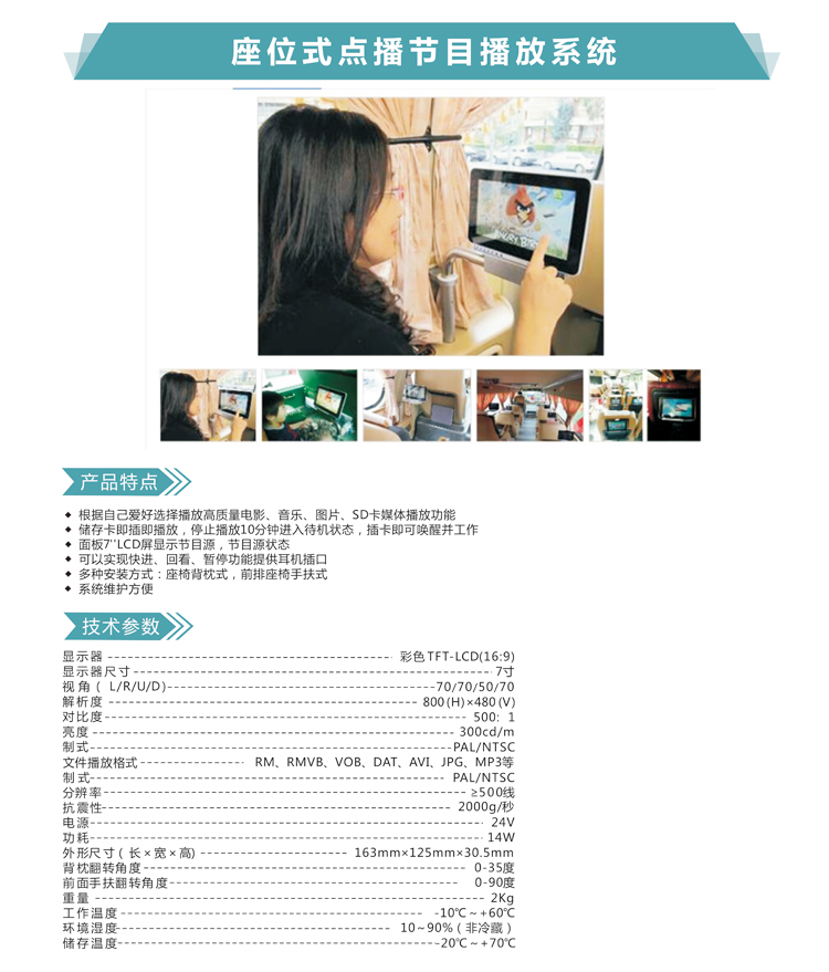 产品名称:座位式点播节目播放系统